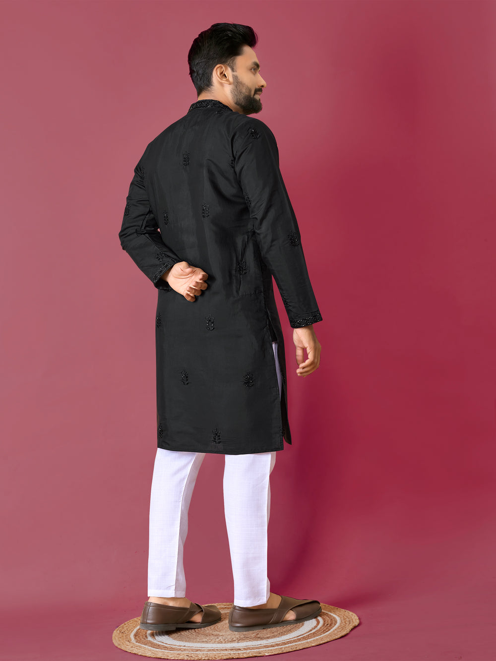 Having Some Richness in Our Traditional Indian Mens Kurta Pajama Set With Val Moti Handwork