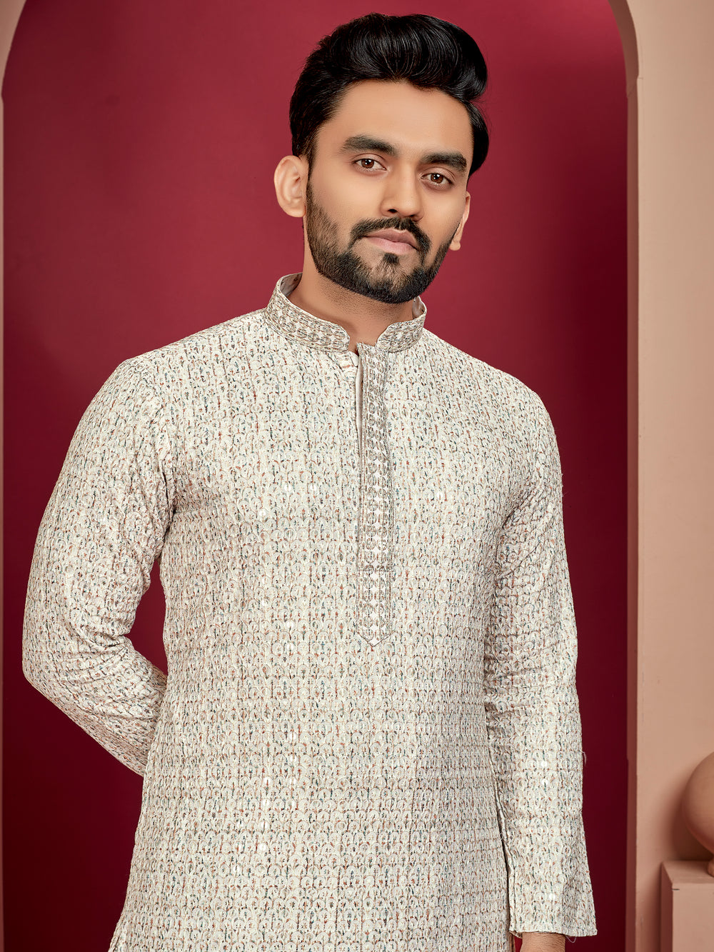 MULTI WEDDING MENS KURTA PAJAMA IN RAYON WITH HEAVY LUCKNOWI AND PRINTED WORK
