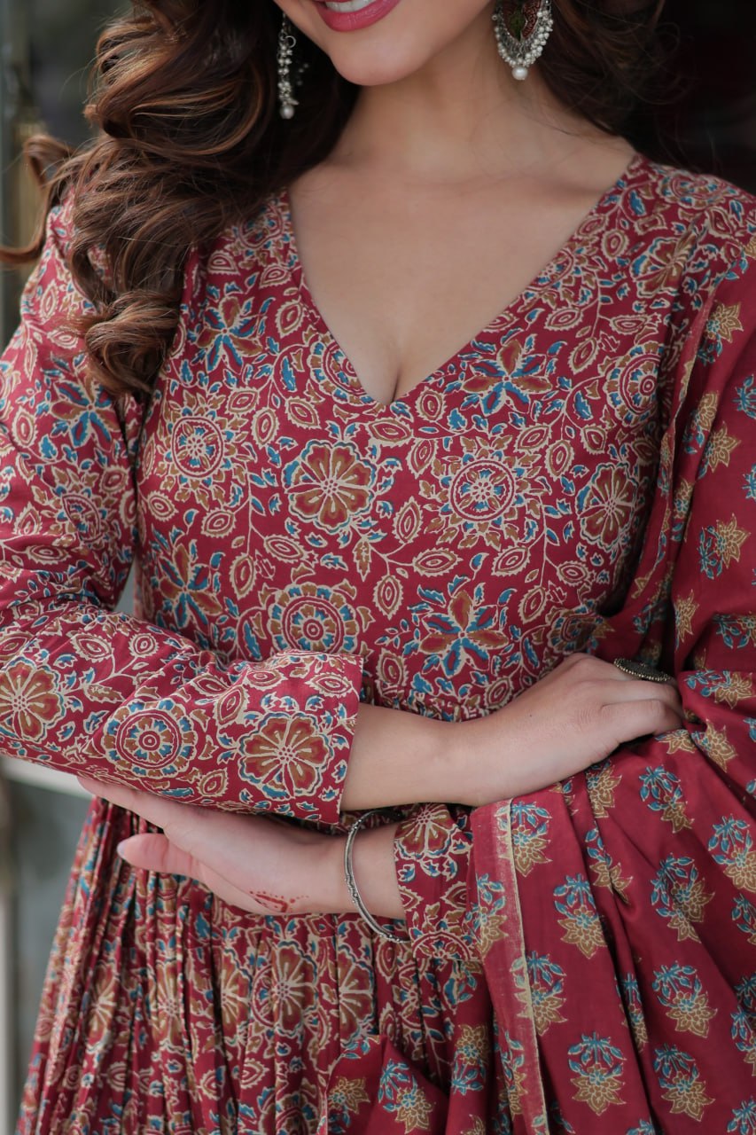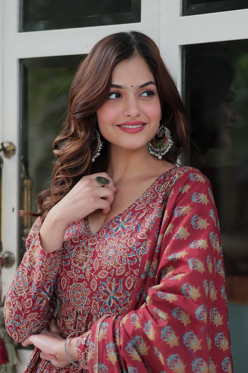 Elevate your everyday ethnic look with this Premium Pure Cotton Anarkali Suit Set, a perfect blend of tradition, comfort, and elegance. Designed with soft breathable cotton, this outfit features a beautifully printed full-length Anarkali kurti, coordinating pants, and a matching dupatta, ideal for daytime functions, family gatherings, and festive occasions.