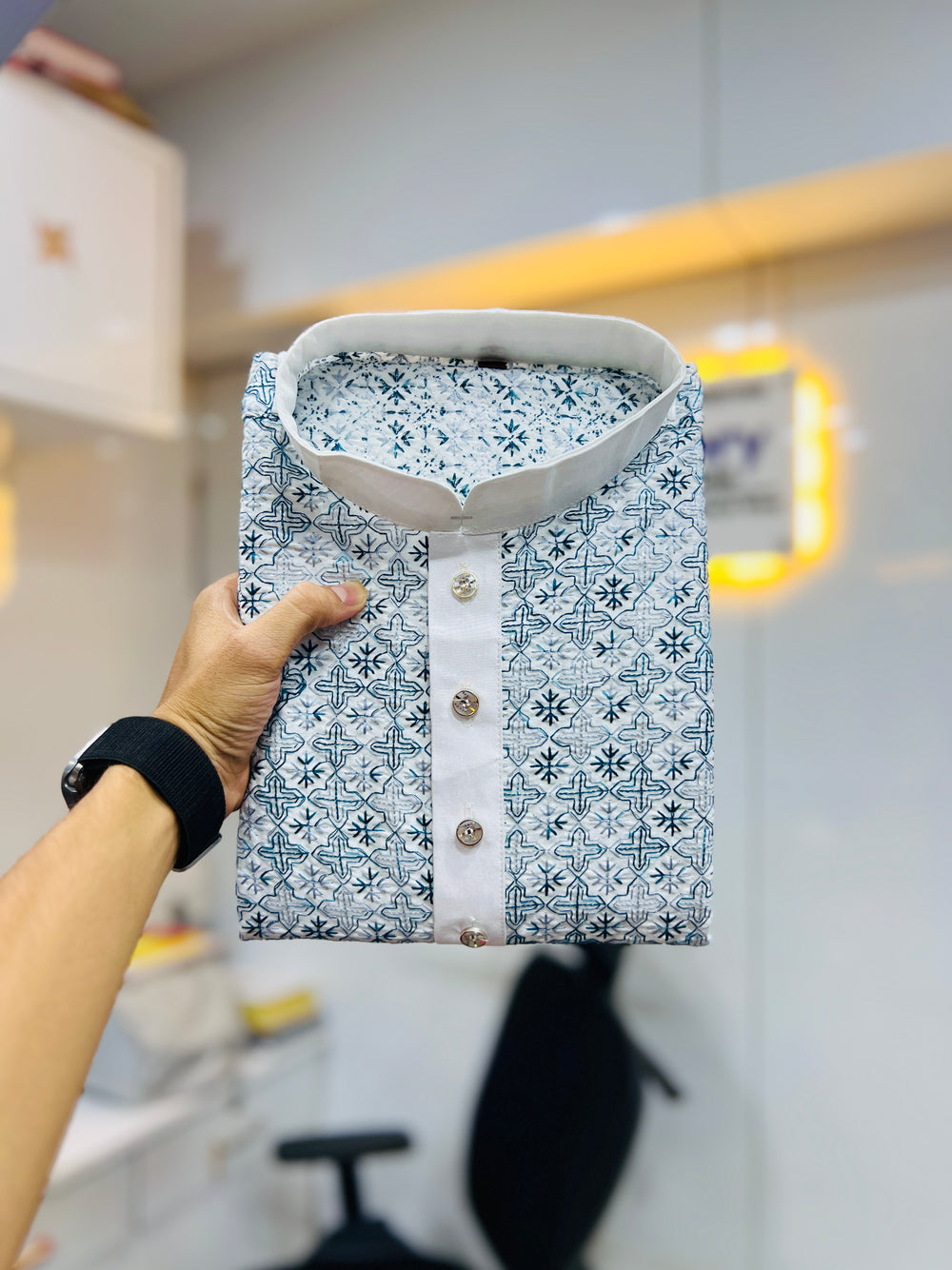 Having Some Richness in Our Traditional Indian Mens Kurta Pajama Set With Multi Embroidery Flower Work And All Over Matte Sequence