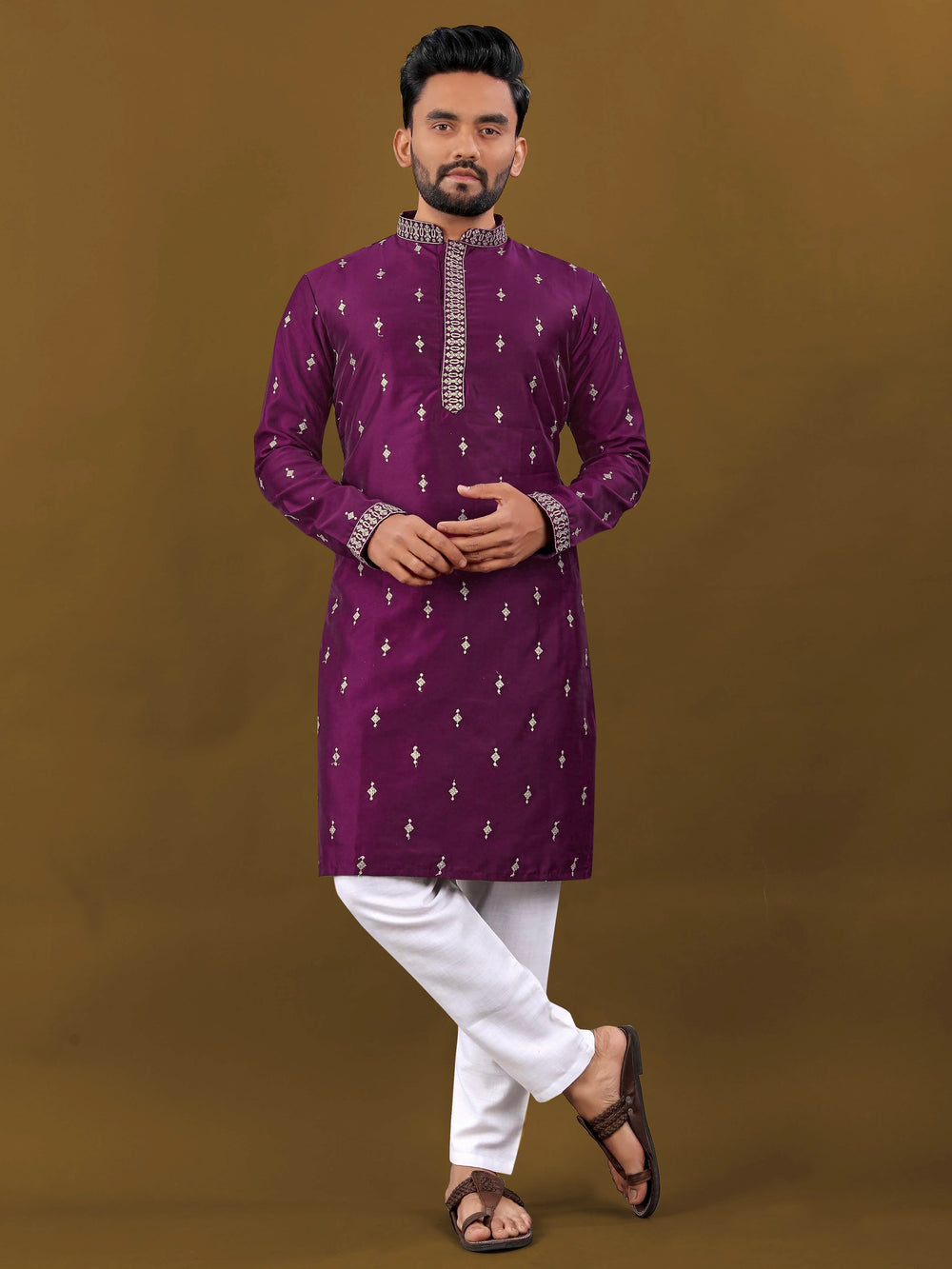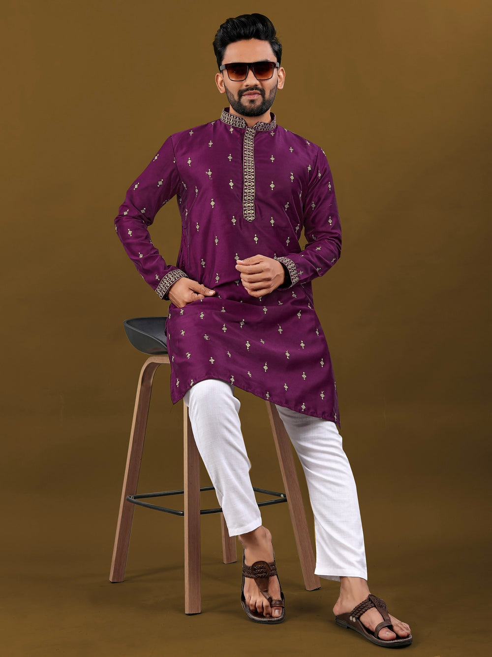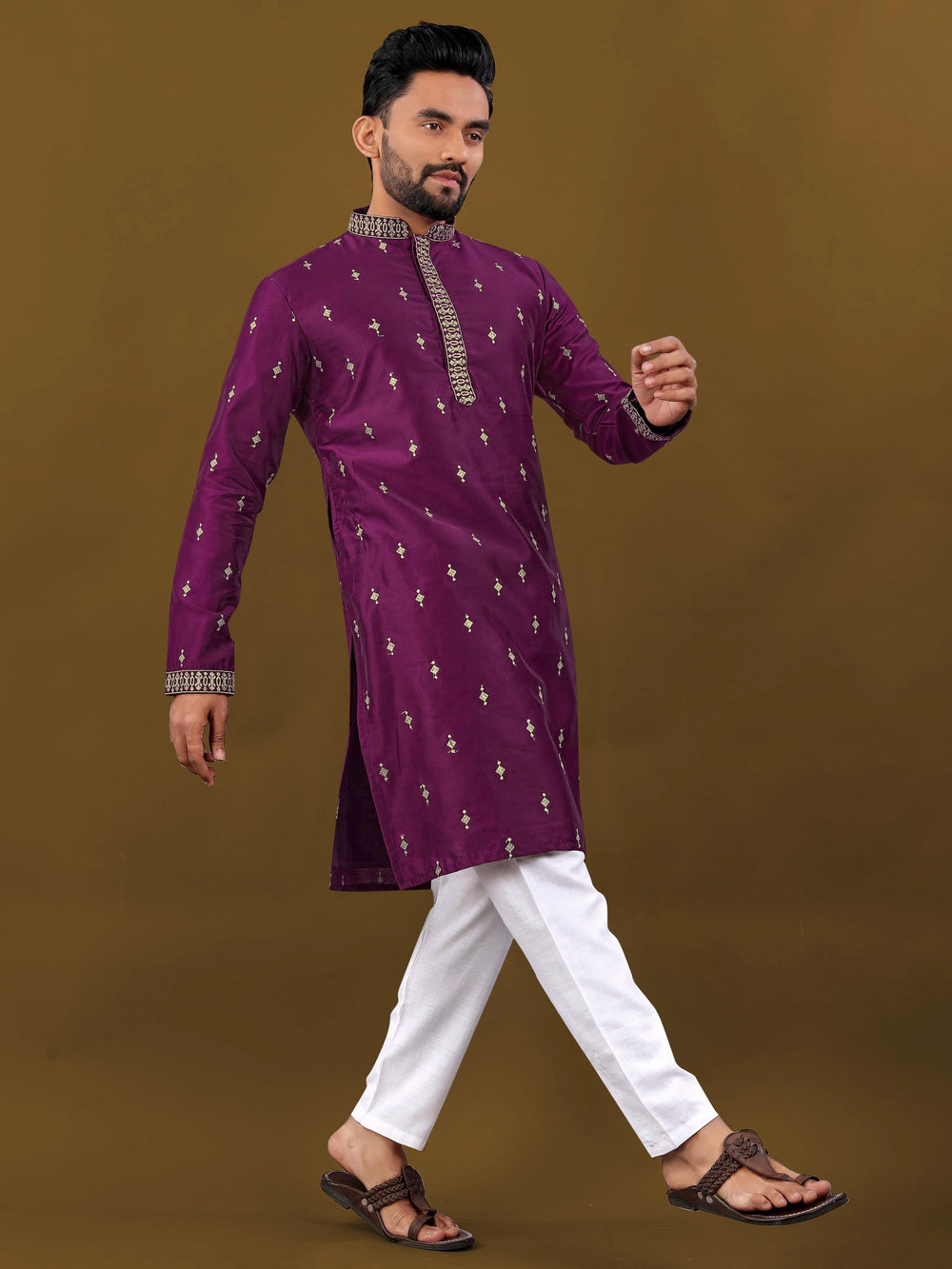 WINE PURPLE COLOR MATKA SILK WEAR MEN'S KURTA AND PAJAMA FOR MEN